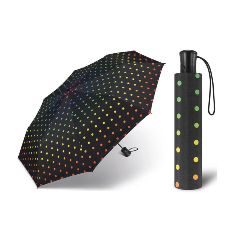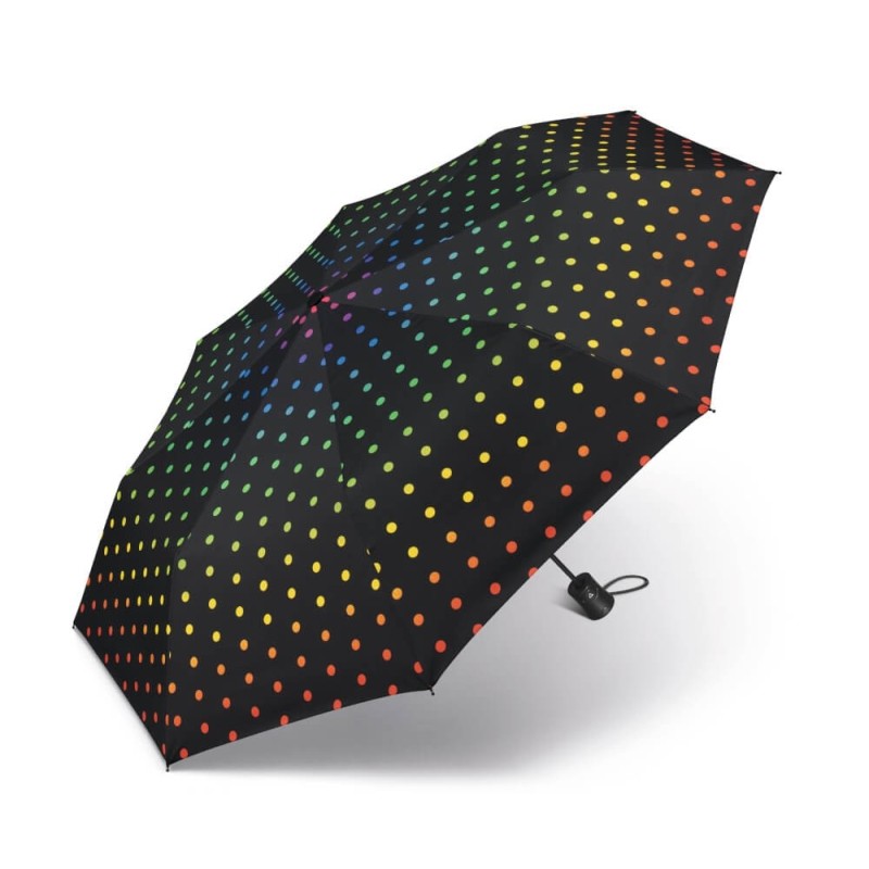 Automatyczna parasolka marki Happy Rain otwierana przy pomocy jednego przycisku, zamykana manualnie.