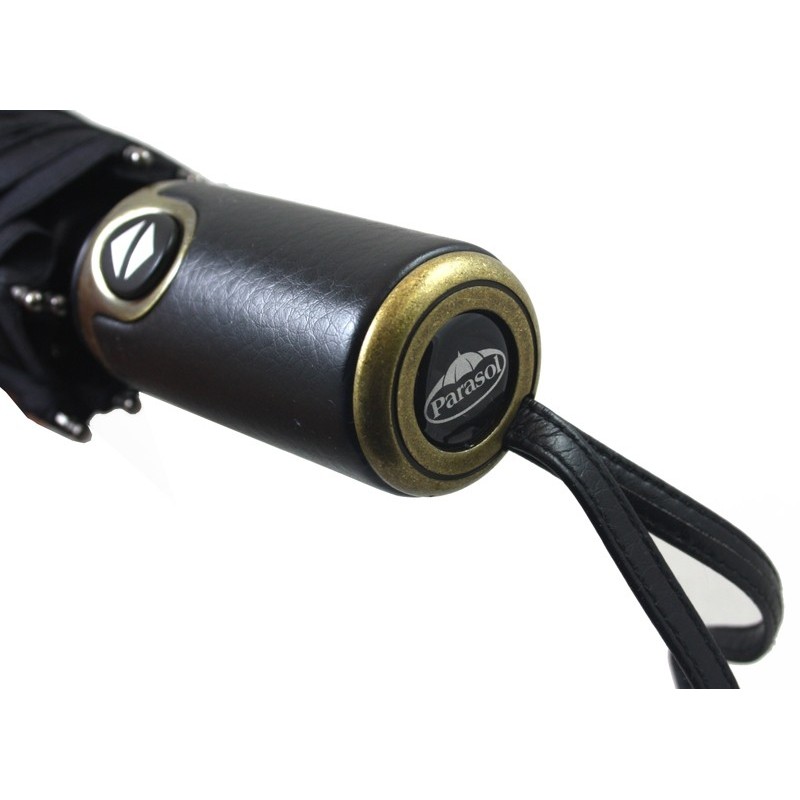 ► Parasolka wyposażona została w wygodną skórzaną rączkę.