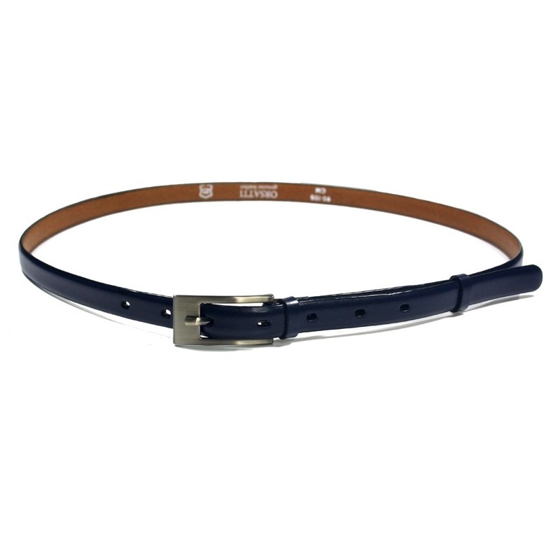 Granatowy pasek damski marki Orsatti z klasyczną, metalową klamrą. Wykonany z wysokiej jakości skóry naturalnej. Idealnie pasuje do tunik, sukienek, swetrów czy też spodni, nadając całemu zestawieniu charakteru. Zapakowany w eleganckie pudełko oraz torebkę z logo producenta.