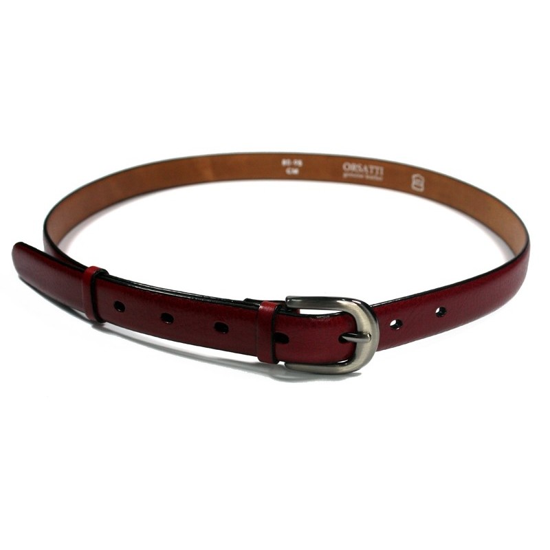 Czerwony pasek damski marki Orsatti z klasyczną, metalową klamrą. Wykonany z wysokiej jakości skóry naturalnej. Idealnie pasuje do tunik, sukienek, swetrów czy też spodni, nadając całemu zestawieniu charakteru. Zapakowany w eleganckie pudełko oraz torebkę z logo producenta.