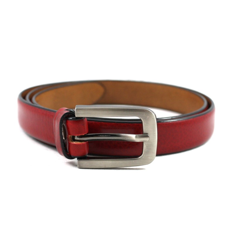 Czerwony pasek damski marki Orsatti z klasyczną, metalową klamrą. Wykonany z wysokiej jakości skóry naturalnej. Idealnie pasuje do tunik, sukienek, swetrów czy też spodni, nadając całemu zestawieniu charakteru. Zapakowany w eleganckie pudełko oraz torebkę z logo producenta.