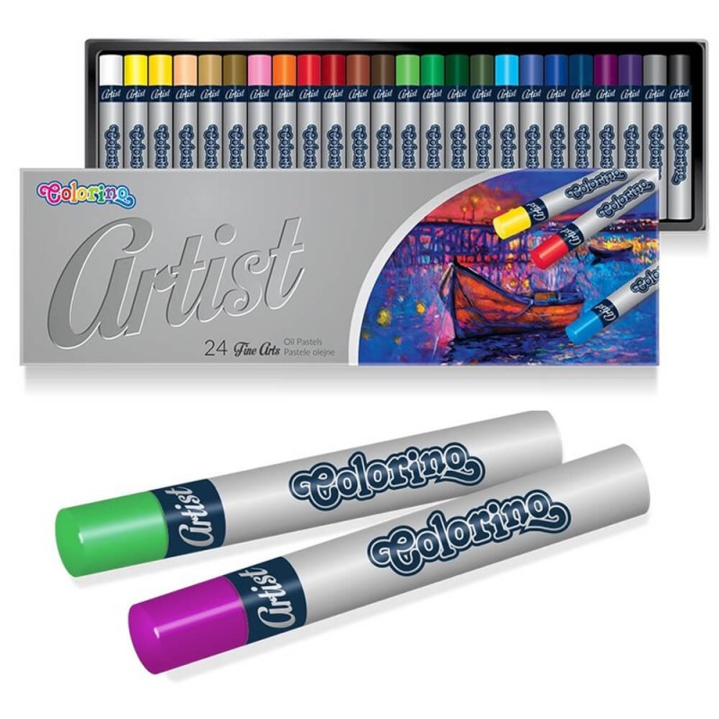 Pastele olejne firmy Colorino. Opakowanie zawiera 24 pastele, każdy w innym kolorze.