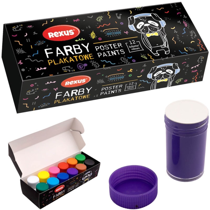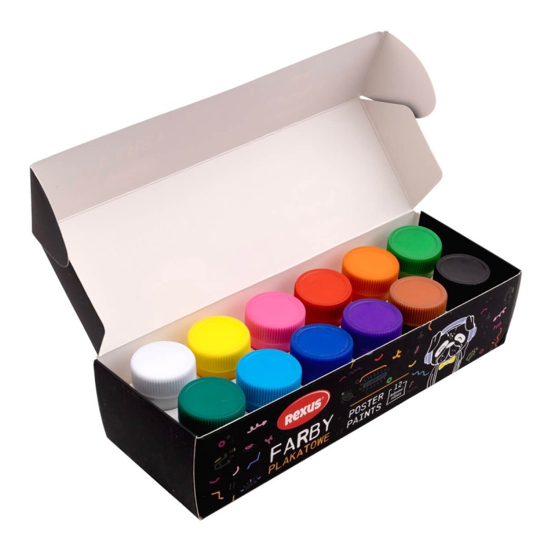 Farby plakatowe Rexus 12 kolorów w zakręconych słoikach o pojemności 20 ml