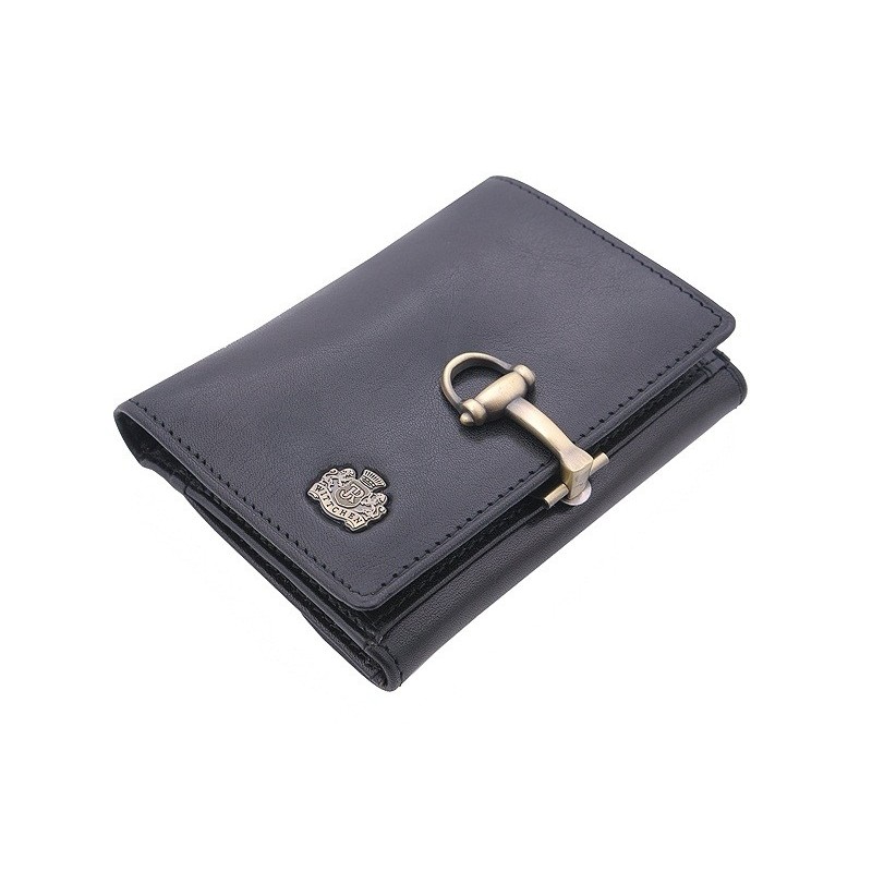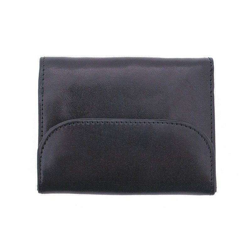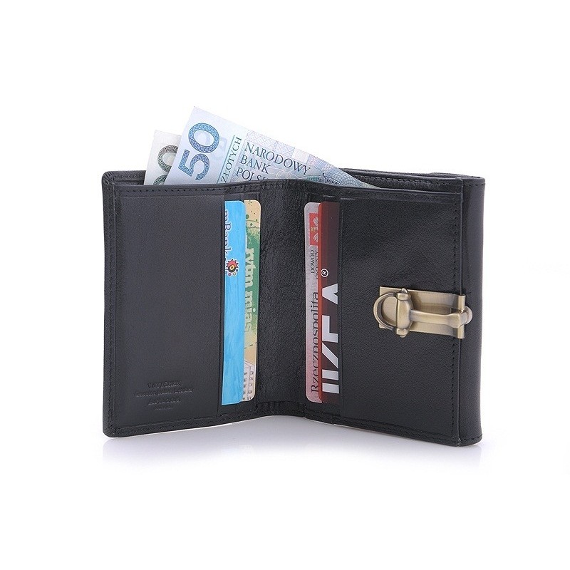 Czarny nieduży portfel damski marki Wittchen. Posiada kieszeń na banknoty, miejsce na 6 kart kredytowych, oddzielną kieszeń na bilon, 1 dodatkową kieszeń.